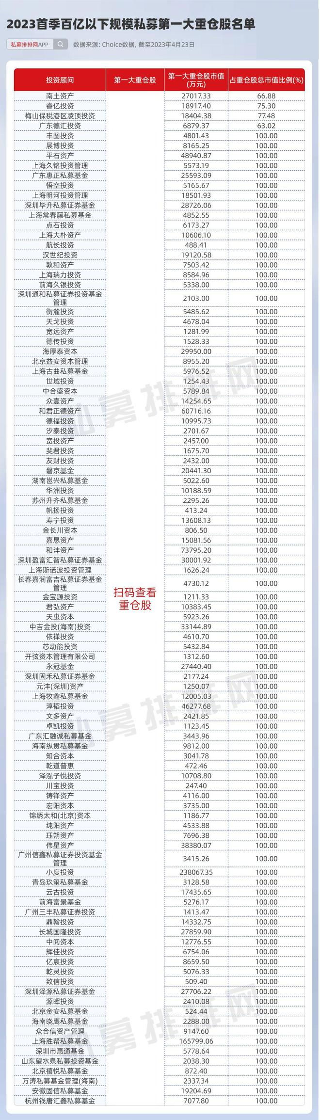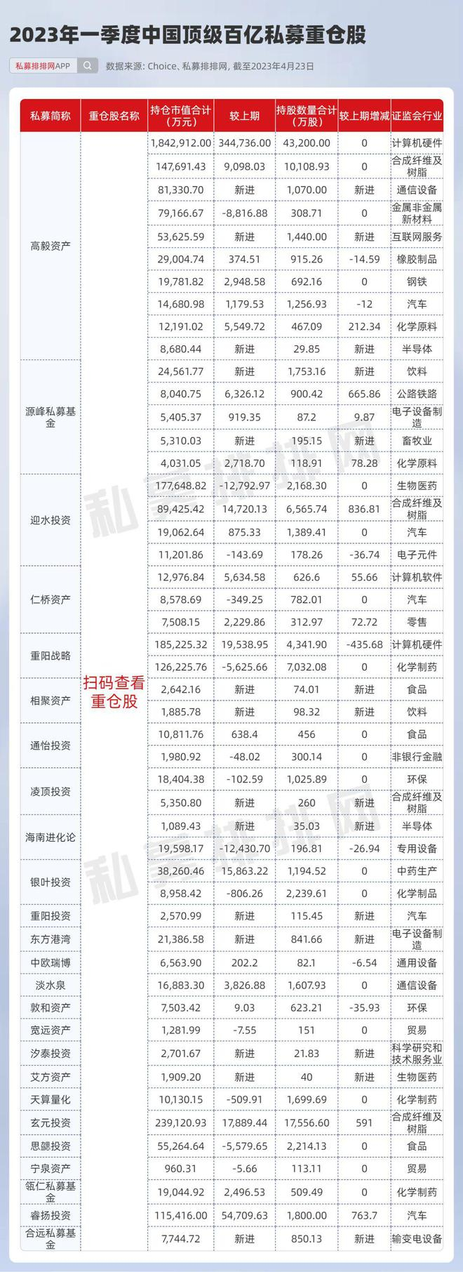 截至4月23日,备受市场关注的高毅资产、迎水投资、东方港湾、淡水泉、相聚资本、通怡投资、重阳投资、慎知资产、合远基金等多家知名百亿私募部分重仓股已浮出水面,看看他们都买了什么?