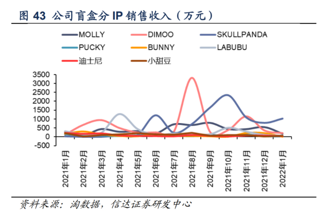 除此之外,从运营角度看,泡泡玛特自2016年推出Molly后开始掀起国内消费热潮,至今一直处于扩张期,中间经历了其他品牌的崛起与追赶,也经历了新冠疫情的蔓延和消散;IP运营角度看,泡泡玛特正努力摆脱被市场诟病的IP依赖症,开始将更多注意力转移到IP多样化上。