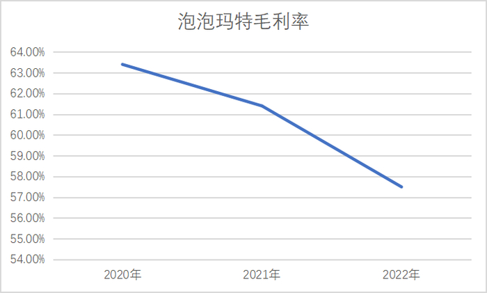 潮玩作为非刚性消费品,除了IP外,本身并不具备护城河。层出不穷的市场迫使泡泡玛特提升产品质量,往日依靠IP带来高毛利的生意模式,最总还是走向了“卷”工艺这条路。从泡泡玛特的披露数据来看,为了追求更优质的工艺,其不得不一步步压缩毛利率。自上市以来,泡泡玛特的毛利率出现了明显的下滑。