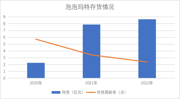 而2020年至2022年,新冠疫情下线下消费场景受到限制、消费者消费意愿低迷,但前期泡泡玛特仍保持原有开店节奏,导致企业存货增加,进一步引致周转率降低。