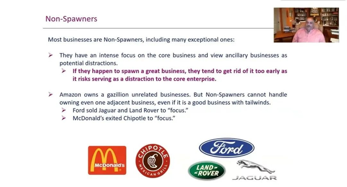 衍生器(spawner)是指能不断产生相关和非相关业务的公司。只有极少数公司拥有成为伟大衍生器的基因。
