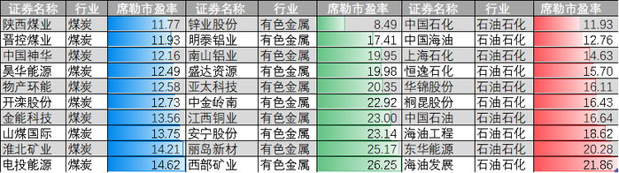 (3)以席勒市盈率看能源有色