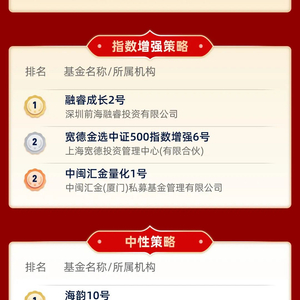 深圳前海融睿投资有限公司的“融睿成长2号”在大赛4月月度奖指数增强策略拔得头筹。前海融睿投资成立于2015年,管理规模在0-5亿元,核心策略为股票策略,在管基金数量12只。