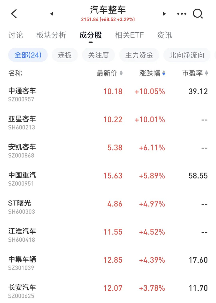 汽车产业链集体走强,汽车股批量涨停!