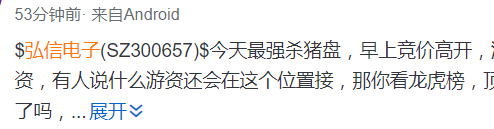 相比胡锡进的幸运,弘信电子的股民今天有些不幸。近期热门股弘信电子今日高开低走跌停,却引来了不少投资者的声讨,原来弘信电子近期和摩尔线程签订合作协议,公司股价不断创新高,今日盘前有大V重点推荐弘信电子,甚至还有300多位粉丝打赏。结果下午遭遇跌停,事后不少粉丝讨说法。龙虎榜数据来看,华福证券上海宛平南路卖出7485万,成为今日砸盘主力。