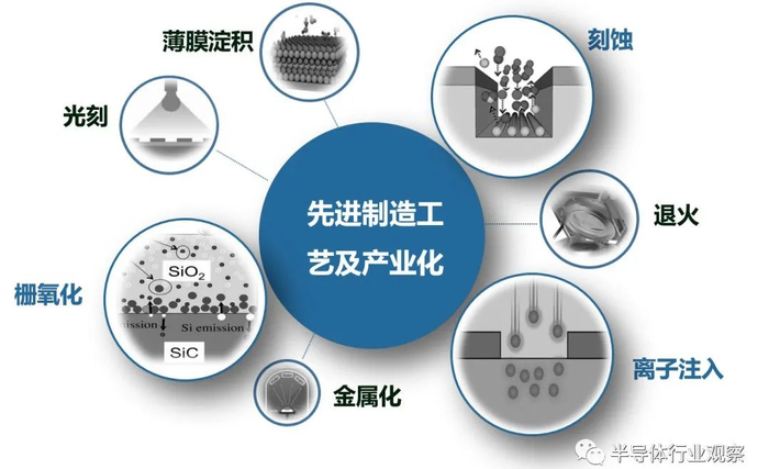 由于SiC材料硬度高、熔点高等特性,需要一些特殊的生产设备与工艺——包括高温退火炉、高温离子注入机、SiC减薄设备、背面金属沉积设备、背面激光退火设备、SiC衬底和外延片表面缺陷检测和计量设备等。