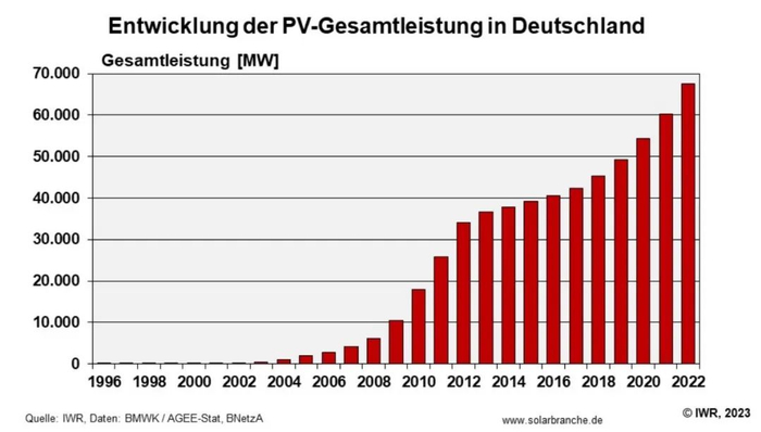 根据德国经济与能源部的测算,到2030年光伏发电总量必须从60GW增加到200GW以上,德国的能源转型才能成功。根据这一目标,德国在未来8年内每年要安装超过17GW,而2021年和2022年这一数字仅为5.46GW和7.18GW。