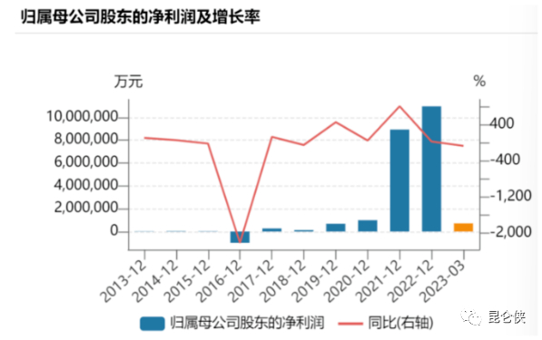 公司净利润从2020年的99亿暴增至2021年的893亿,增长近10倍。上一次利润的巅峰,还是2007年金融危机前的全球资产泡沫期。