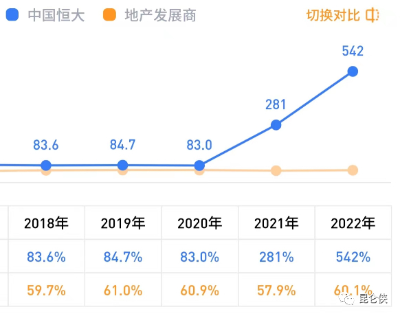 而通过财务分析可以看出,恒大长期以来有息负债率一直处于高位,远高于行业的平均水平,而随着2021年的暴雷,恒大的销售端停滞,负债率急剧攀升,落到如今资不抵债的处境。