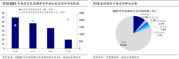 从渗透率看,萌芽期消费行业渗透率较低,相较更成熟的国外市场提升空间广阔。例如我国露营仍属于小众运动,根据世展网援引华经产业研究院,2021年我国露营渗透率仅1.0%,同期美国渗透率为15.8%、日本为11.2%;类似地,我国养宠渗透率相比发达国家仍然较低,根据京东发布的《2022年中国宠物行业趋势洞察白皮书》显示,2021年我国家庭宠物渗透率仅20%,相较美国、日本过半的家庭宠物渗透率仍有较大上升空间。