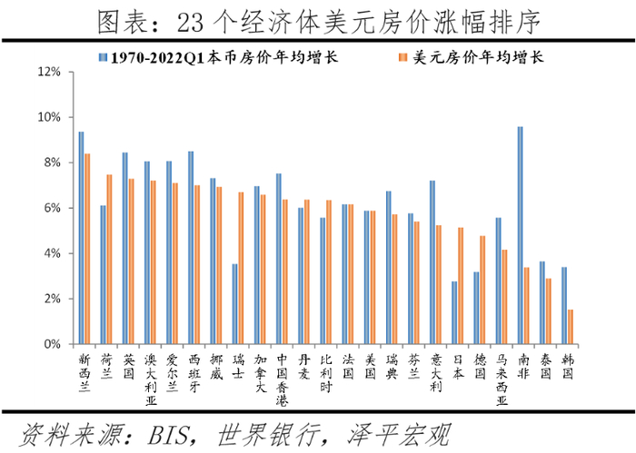 1970年Q1-2022年Q1,23个经济体房价平均累计上涨32.4倍、年均增长超6%。依据房价涨幅大小,可分为三类: