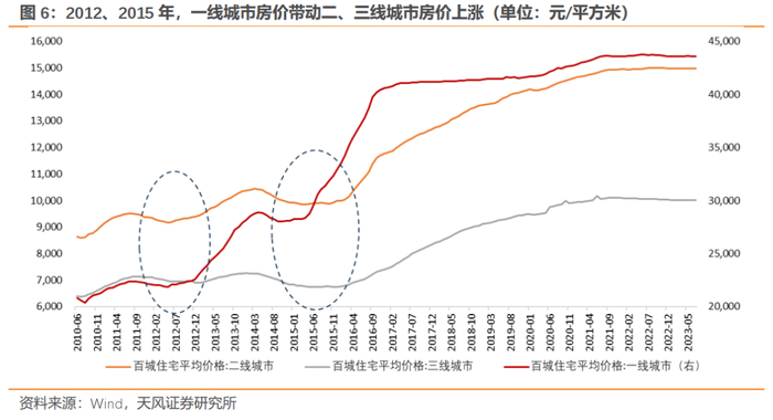 第三,预计一线城市政策放松仍会较为谨慎,一线城市大幅放松的概率有限。在房地产市场从增量市场转变为存量市场的过程中,由于一线城市对人口的吸引力仍然较大,在总的潜在需求趋于回落的情况下,我们预计一线城市对其他城市的影响也将从之前的“带动”转变为“虹吸”。