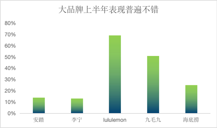 而且,无论在哪个领域,表现最好的都是那些头部品牌,这也是消费更加聚焦的表现,也可以说品牌积累带来的回报。