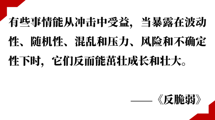 首先解释下反脆弱。反脆弱就是脆弱的对立面,反脆弱是能从冲击中受益,当暴露在波动性、随机性、混乱和压力、风险和不确定性下时,它们反而能茁壮成长和壮大。简单来说就是反脆弱的东西能在不确定性中获益。