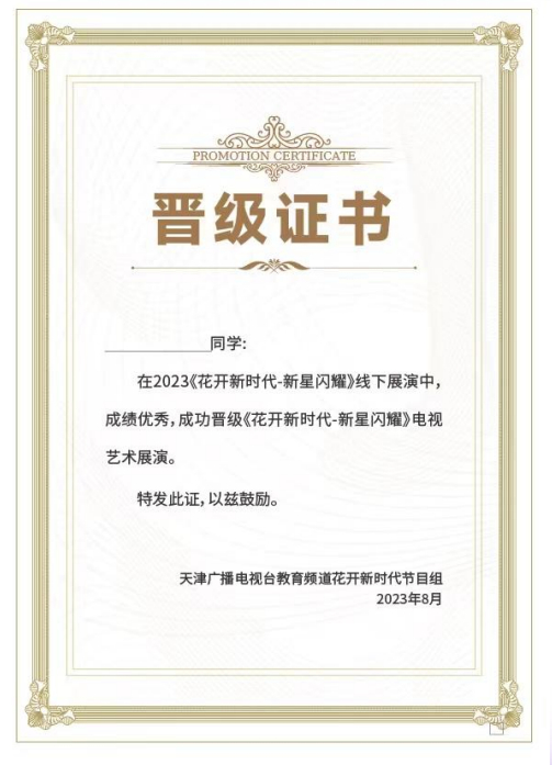 获得晋级资格的选手可参加《花开新时代·新星闪耀》电视展演
