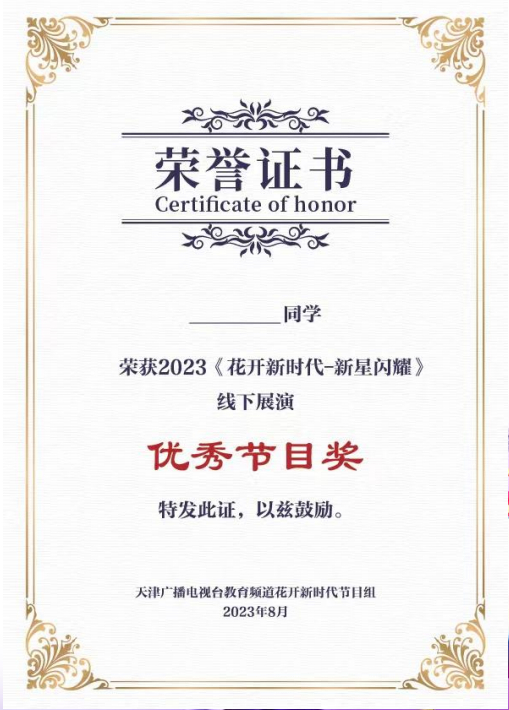 电视播出——天津广播电视台《花开新时代 · 新星闪耀》栏目播出