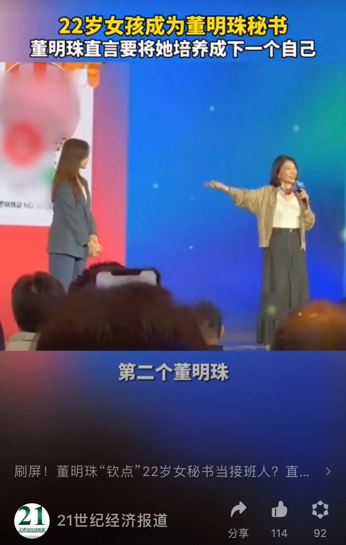 2021年12月,一段格力电器董事长董明珠和秘书孟羽童一同现身中国制造业领袖峰会的视频曾引发人们关注和热议,董明珠在活动现场表示,“要将孟羽童培养成第二个董明珠。