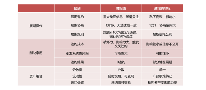在展期操作上,非标可以私下里商谈,没有太大的负面影响;而城投公司的债券展操作难度很大,还未商谈就已经形成重大负面新闻和舆情。