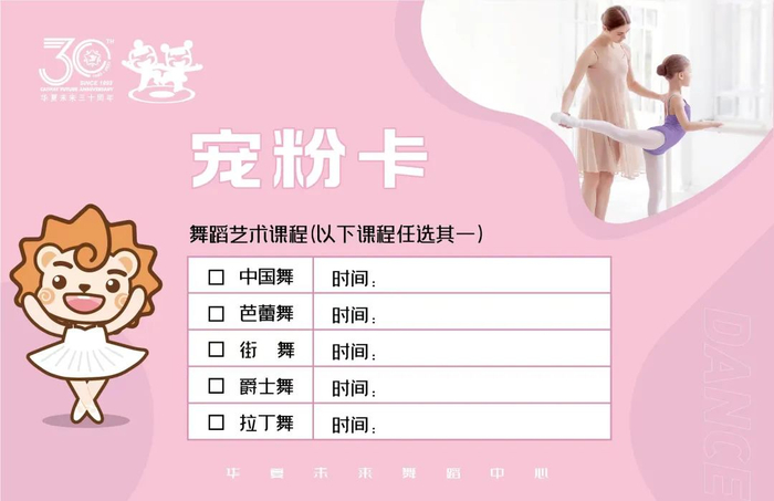 2、新生:凭宠粉卡,当场报名舞蹈课程,可获得舞蹈馆100元课程代金券(仅限舞蹈馆使用)+咕卡套盒