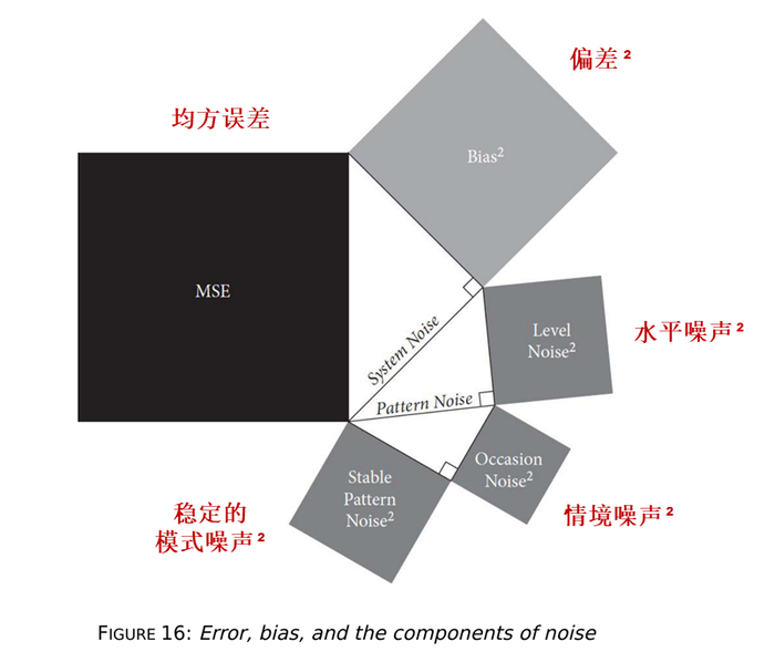 有了噪声的分类,我们更想知道各类噪声在“错误”中的占比。卡尼曼在书中告诉了我们答案: