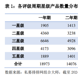 2024年01月,三年期五星级私募产品856只,对应私募525家。其中,新晋三年期五星级产品有133只,对应私募118家。此外,有95产品在12月出现降级,大部分降为四级。少部分降为三级,对应83私募。