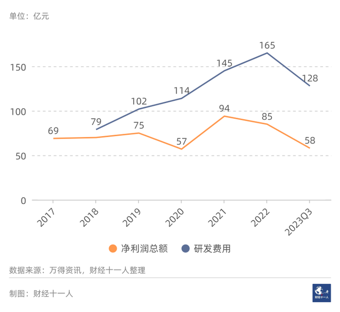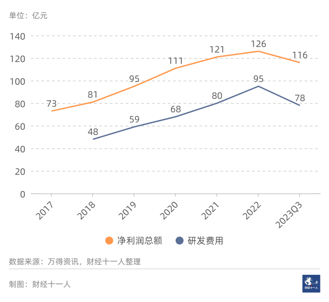 2024年1月20日,行业总市值为11,551亿元。图1是2017年以来行业净利润总额,以及研发费用总额。2017年到2022年,净利润总额年复合增长率为6.5%。