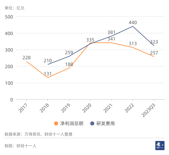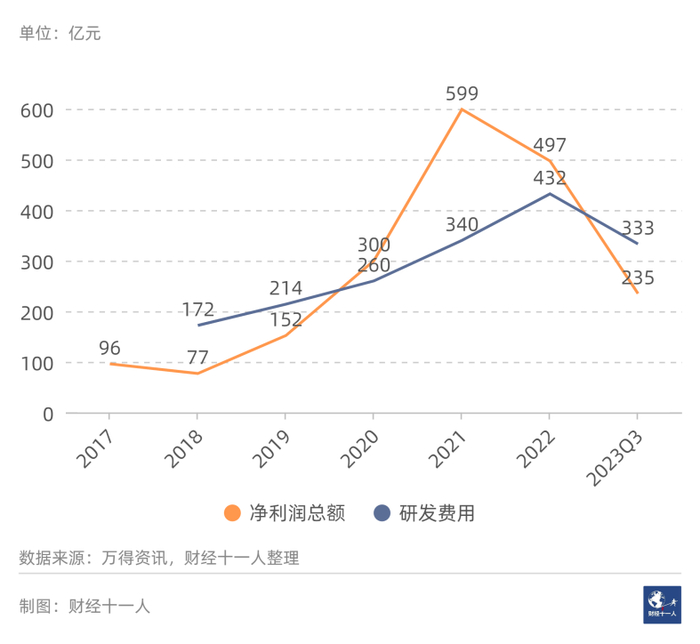 图2: 通信设备行业的净利润与研发费用