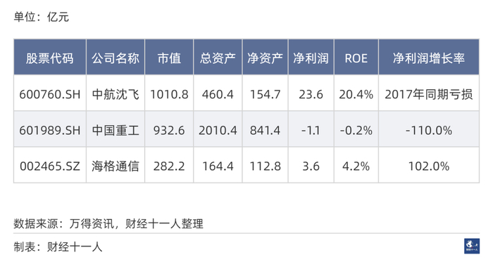 表11是兵器之外的军工行业2017年以来的一些基本情况统计,从表11可以看到如下信息。