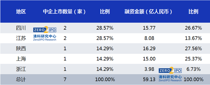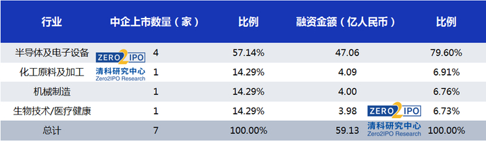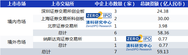 ·境内外上市中企共7家,总融资额为59.13亿人民币