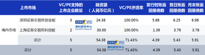 ·5家上市中企获VC/PE机构支持,渗透率为71.4%