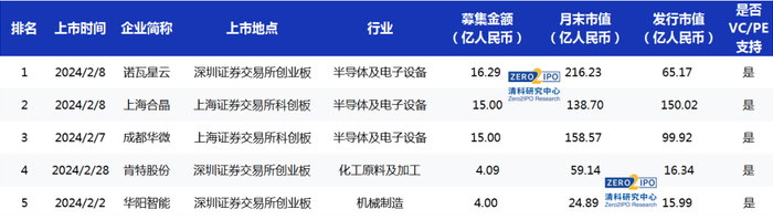 表5 2024年2月VC/PE支持的