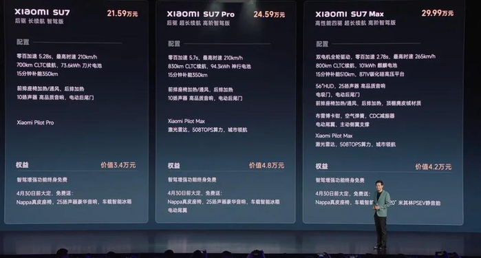小米SU7 MAX版本售价29.99万元。