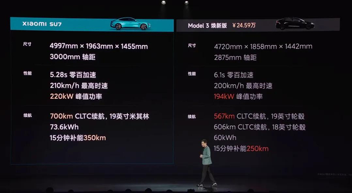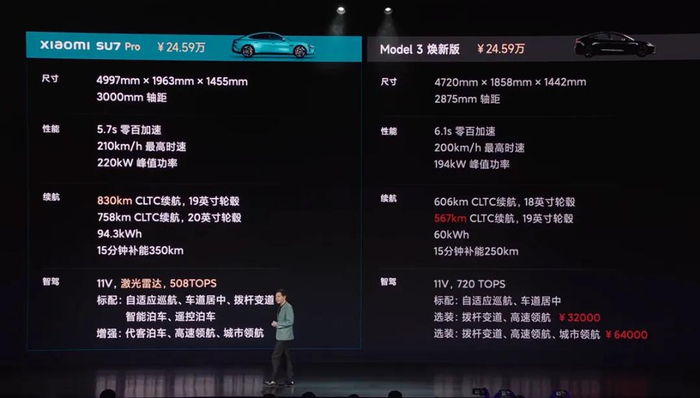 发布会上,雷军表示,小米SU7是目前50万以内速度最快的量产车,媲美百万豪车,最高车速达到265km/h。“设计这款产品的时候是直接对标保时捷来做的,所以我们在每一个性能表现上都跟保时捷taycan去死磕。”雷军表示。