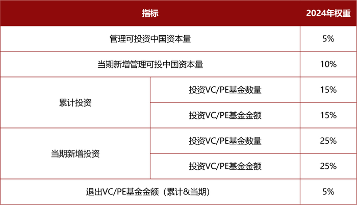 「2024年中国股权投资市场机构有限合伙人50强」排名与往年一致,将从募资、投资、退出等各方面进行全面考察,排名体系选择管理可投资中国的资本量、当期新增可投资本量、累计投资VC/PE基金数量及投资金额、当期新增投资VC/PE基金数量及投资金额、累计及当期新增退出VC/PE基金金额等作为重要的参考指标,力求最大限度地反映现阶段中国机构有限合伙人发展的实际状况。