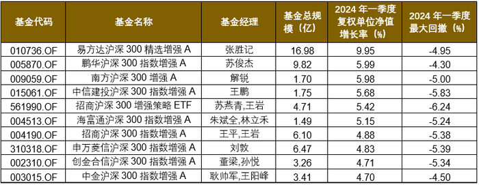 2、2024年一季度收益由高到低进行排名,经理重合的基金仅上榜一次
