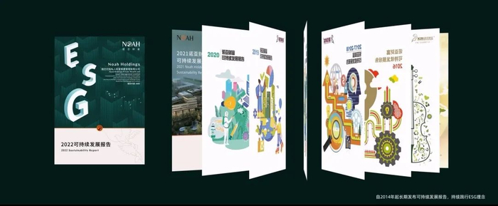 诺亚已经连续九年发布可持续发展报告,不但详细公布每年自身在聚焦公司治理、人才战略、绿色运营、负责任投资、生态环境投入等方向的作为与绩效,还持续遵循国际ESG管理体系落实公司治理制度,从战略高度持续推动环境、社会及治理融入公司日常运营和长期发展。