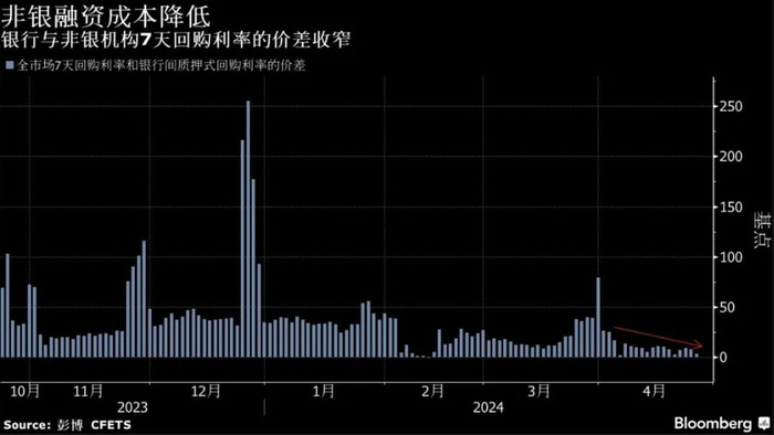 此外,充裕的流动性——这一轮债券走牛的主要原因之一,也并未发生变化。4月以来非银机构和银行的融资成本差距不断收窄。两位资金交易员表示,本月总体上银行给非银机构出借资金的量更充足,且价格也趋于回落。