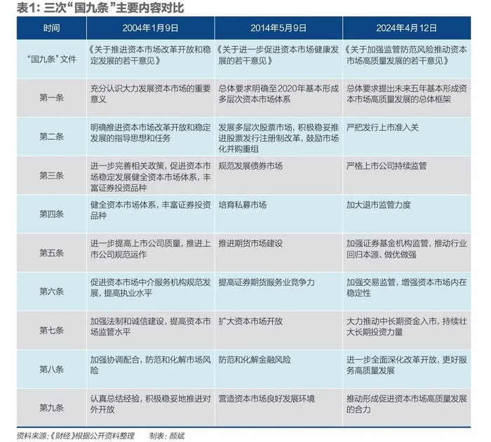 “与前两次‘国九条’相比,本次‘国九条’的宗旨在于通过强化监管防风险引导资本市场长期稳健发展,提升资本市场的政治性、人民性,而并非短期‘快牛’。”中泰证券表示。