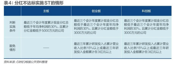 沪深北交易所还将对分红不达标的上市公司采取强约束措施,把多年不分红或者分红比例偏低的公司纳入“实施其他风险警示(ST)”的情形。值得注意的是,实施ST针对的是有盈利的企业,即最近一个会计年度净利润为正值且母公司报表年度末未分配利润为正值的公司。