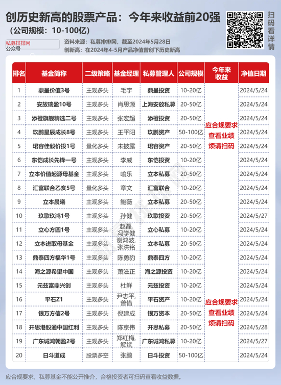 其中,鼎呈投资、上海安放私募、添橙投资、玖鹏资产、珺容资产、东恺投资、立本私募、汇富联合、立本私募旗下均有创新高的股票产品今年来收益超***%(点此蓝字查看收益)。