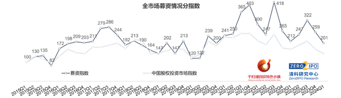 2024Q1股权投资市场指数降至近三年低位,延续下滑态势