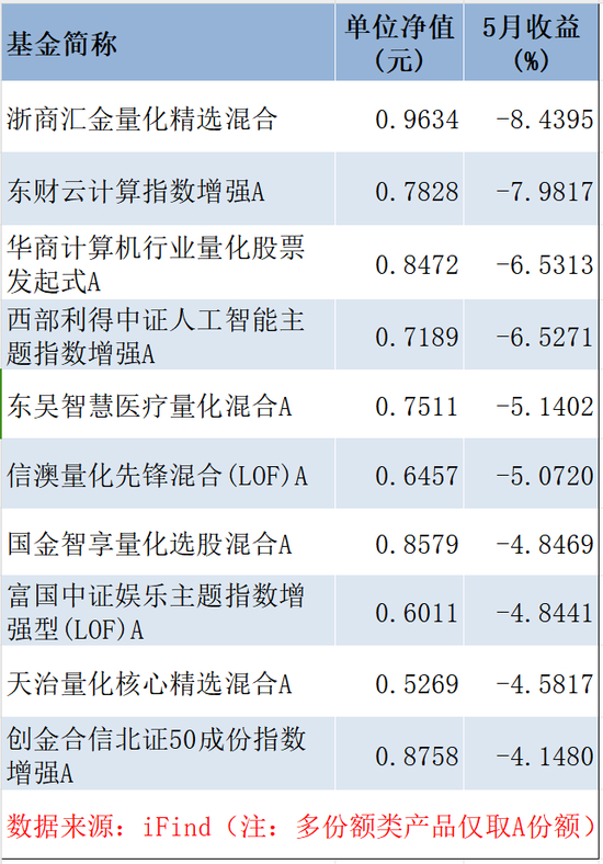 公募量化:5月仅两成产品赚钱,AI相关产品霸占跌幅榜