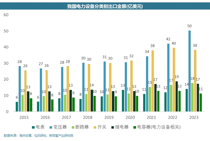 当前,业界一致看好的电力设备出海产品主要集中在电网侧的配电环节,以变电器和高压开关为典型产品。此外,用电侧的智能电表也是信息时代+能源转型背景下具有代表性的出海产品。