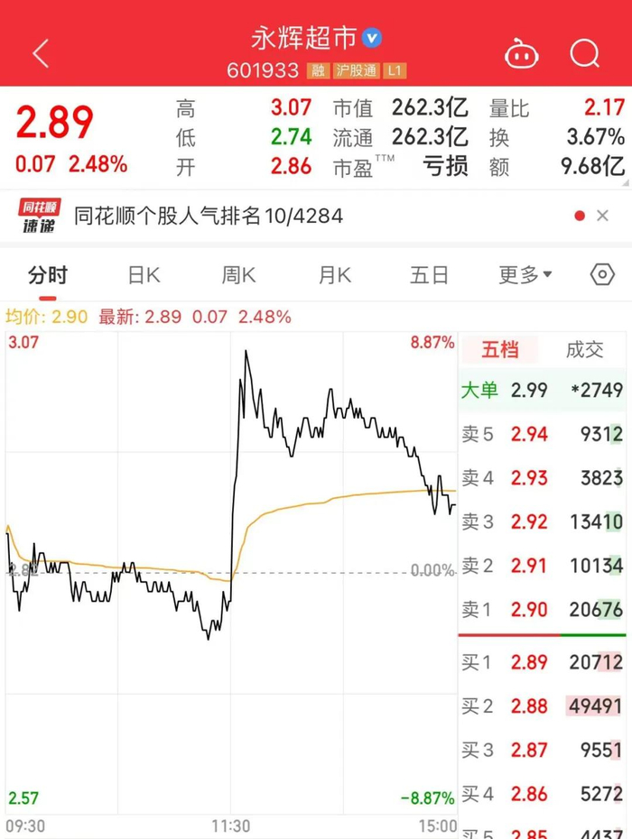 永辉超市盘中冲击涨停