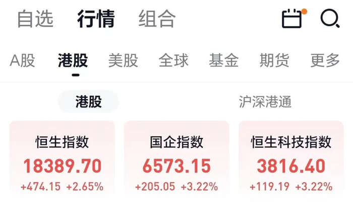 港股三大指数高开高走,截至发稿,恒指涨2.65%上扬近474点重回18000点上方,恒生国企指数、恒生科技指数均涨超3%,市场情绪回升明显。