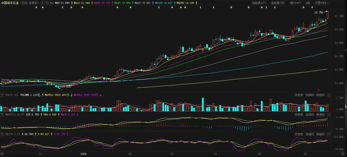 截至收盘,中国海洋石油爆拉超5%,股价创历史新高,最新市值1.08万亿港元。