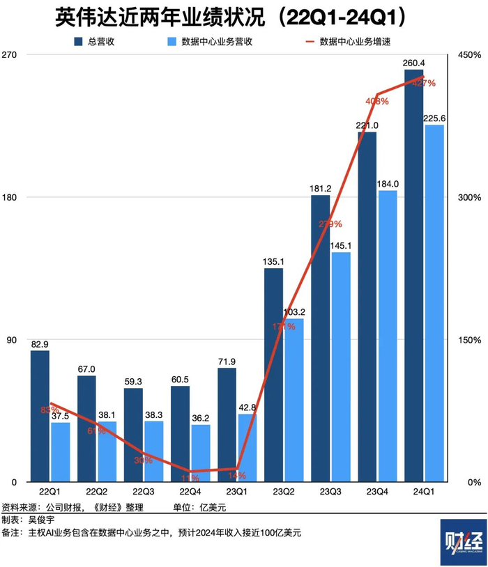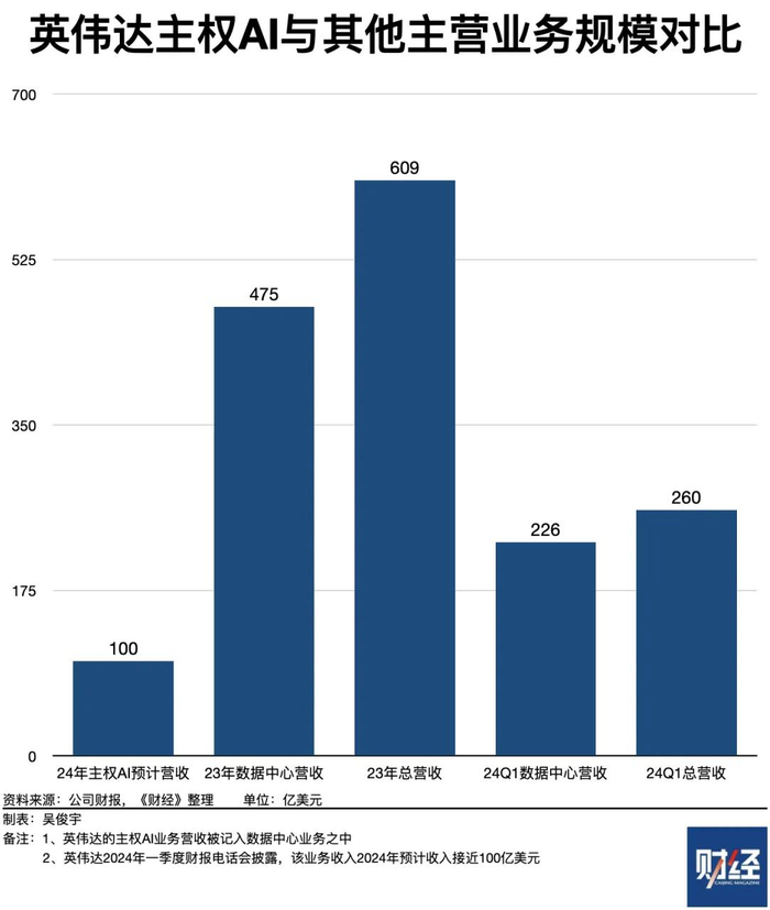 从市场客户分类的角度看,英伟达“主权AI”业务可理解为向各国政府出售AI芯片。英伟达该领域的收入增长正在迅猛增长。该公司管理层在2024年一季度财报电话会上披露,2024年“主权AI”业务将为英伟达带来近100亿美元营收。而在2023年,该业务收入为零。