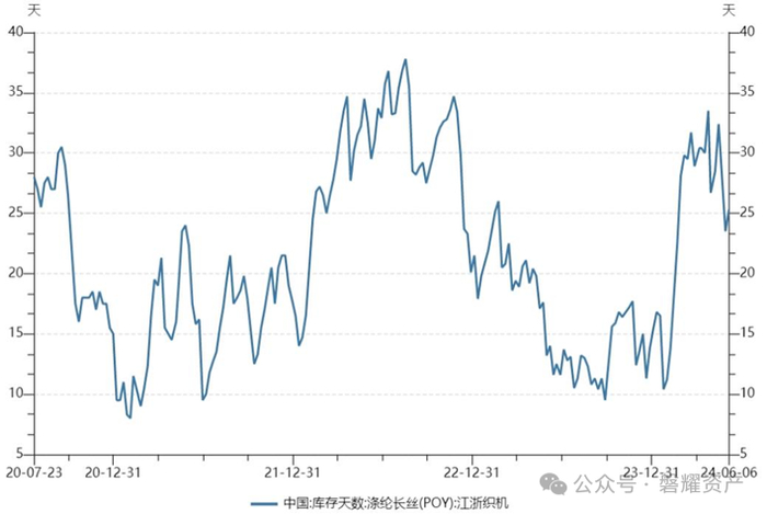 库存方面,2023 年下半年开始,随着国内外消费旺季的到来,织造企业开工率显著提升,涤纶长丝库存量显著下降,在今年3月份库存达到达到近年来的低点,这表明市场对涤纶长丝的需求大幅增加使生产和销售之间的供需平衡得到改善。对于整个涤纶长丝行业来说,库存的减少有助于推动市场价格的稳定甚至上涨,提升行业的盈利能力,涤纶生产企业也面临着更多的订单和市场机会。