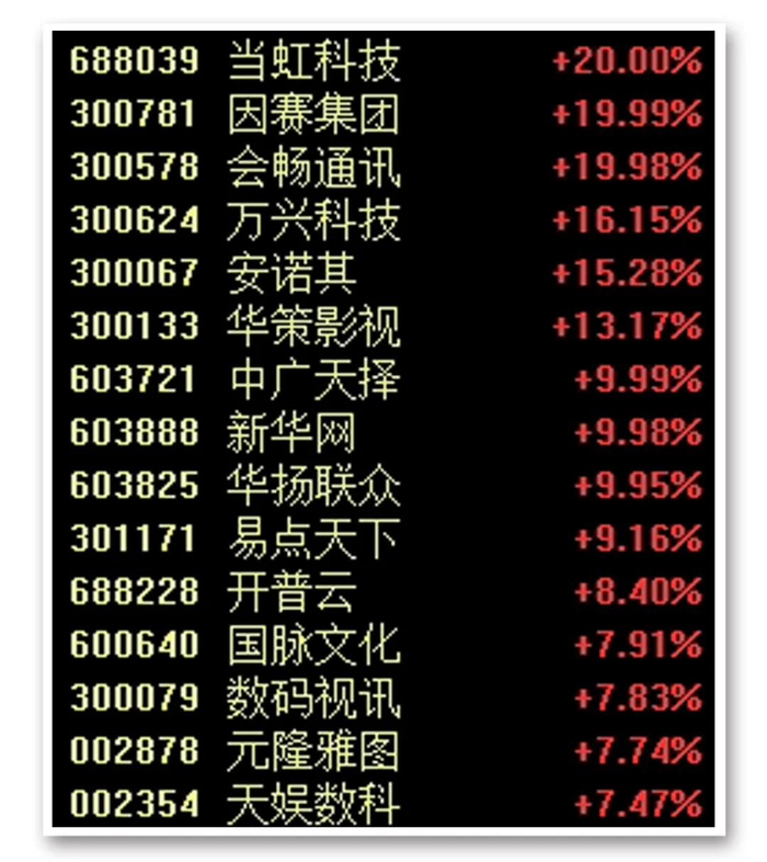 游戏股集体上攻,华闻集团涨停,紫天科技、电魂网络、汤姆猫、天娱数科、冰川网络、完美世界等均大涨超6%。