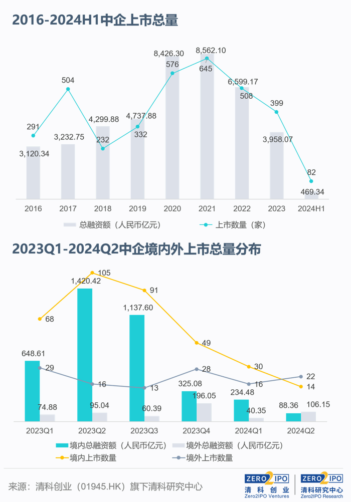 2024年上半年共38家中企在境外上市,同环比分别下降15.6%、7.3%,总融资规模约合人民币146.50亿元,同环比分别下降13.8%、42.9%。